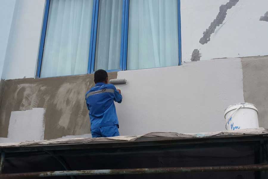 | Spraying | Epoxy spray applied with one coat at 6mm. Once the resin cured the acro props were reinstalled. |