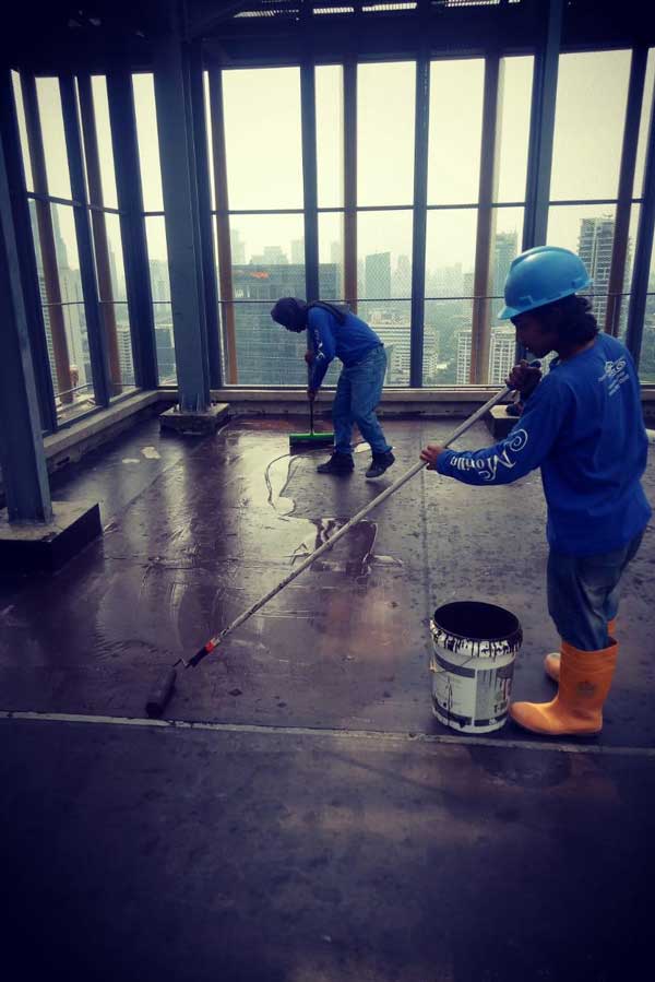 | Preparation | High pressure power wash. The existing coating was then abraded to provide a suitable key for the epoxy followed by power wash again. Areas of infiltration were then drilled and an injection grout system applied to seal the leakages which included fast setting cement (waterplug). The entire surface was then acid etched and washed down with water prior to spraying. |